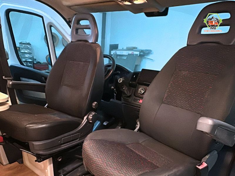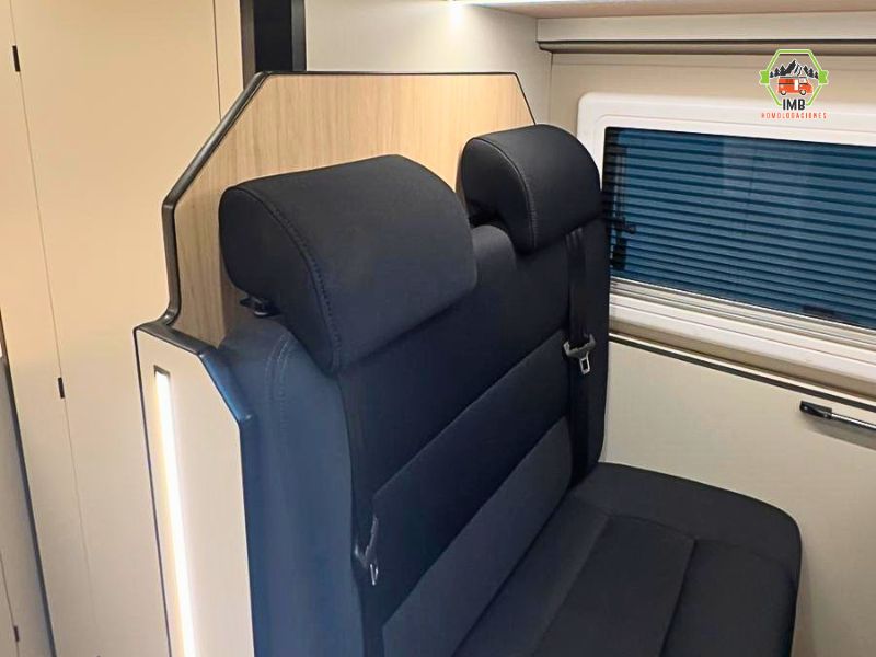 Reconfiguración del interior con aumento de plazas a 4 mediante asientos homologados con cinturones integrados e ISOFIX, junto con instalación de bases giratorias en asientos delanteros.
