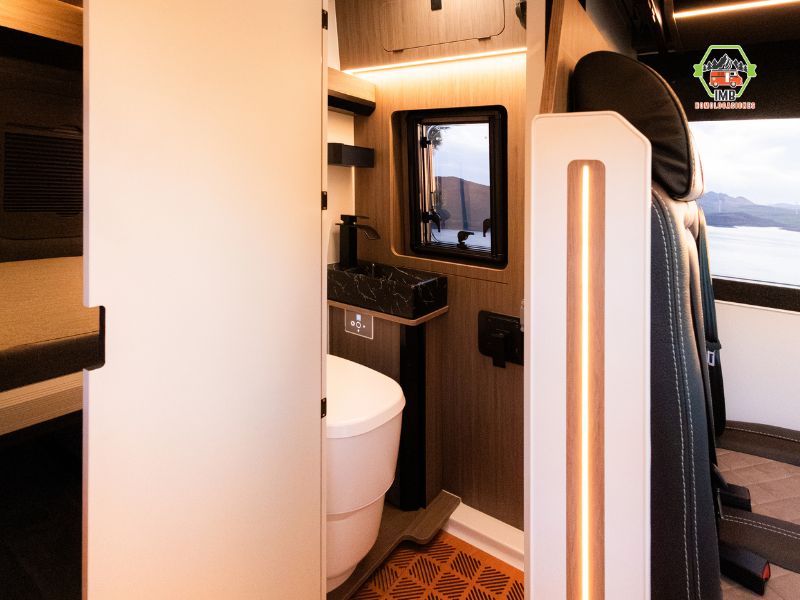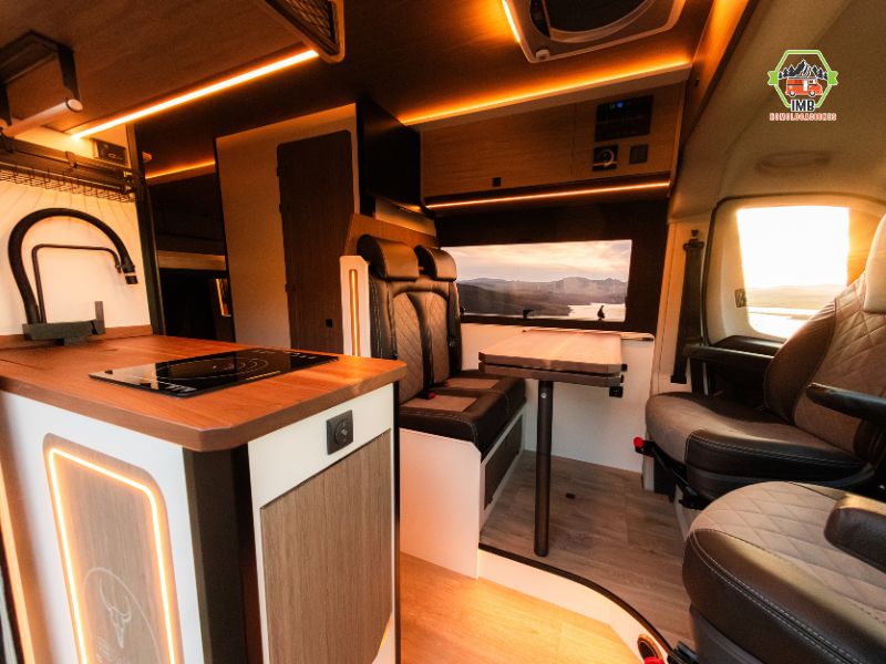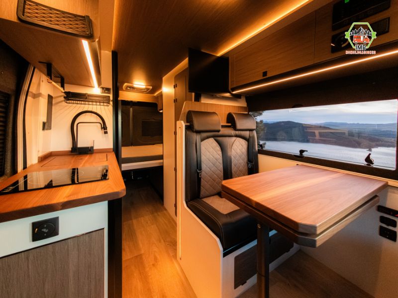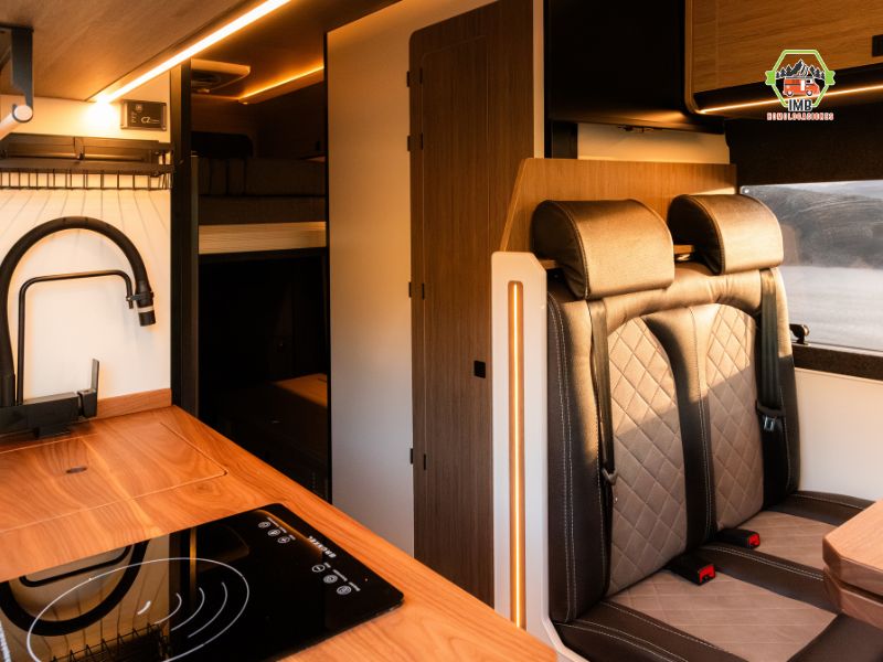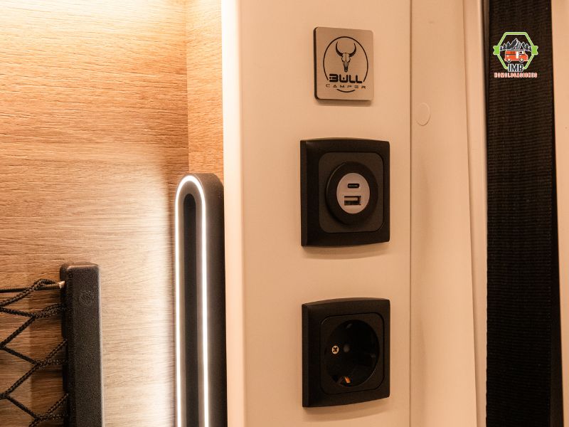 Se incorporan además elementos exteriores como toma de corriente, llenado de agua, toldo lateral y escalón eléctrico para facilitar el uso del vehículo en viaje.