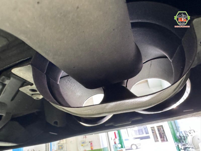 Sustitución de difusor trasero bajo paragolpes, manteniendo salidas de escape, añadiendo solo las colas metálicas incluidas en paragolpes, modelo LOOK AMG E300 SEDAN.