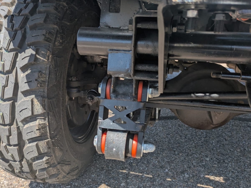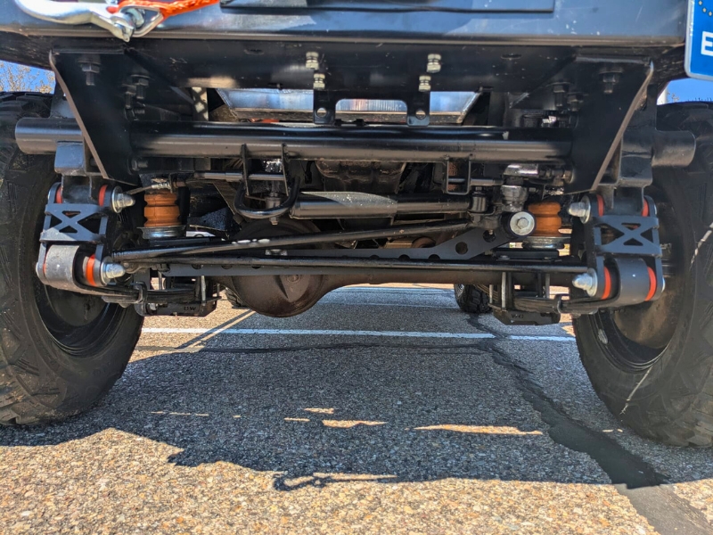 El vehículo cuenta con un nuevo kit de suspensión, incluyendo amortiguadores delanteros y traseros, ballestas reforzadas y gemelas ajustadas para mejorar la estabilidad y el confort en condiciones todoterreno.