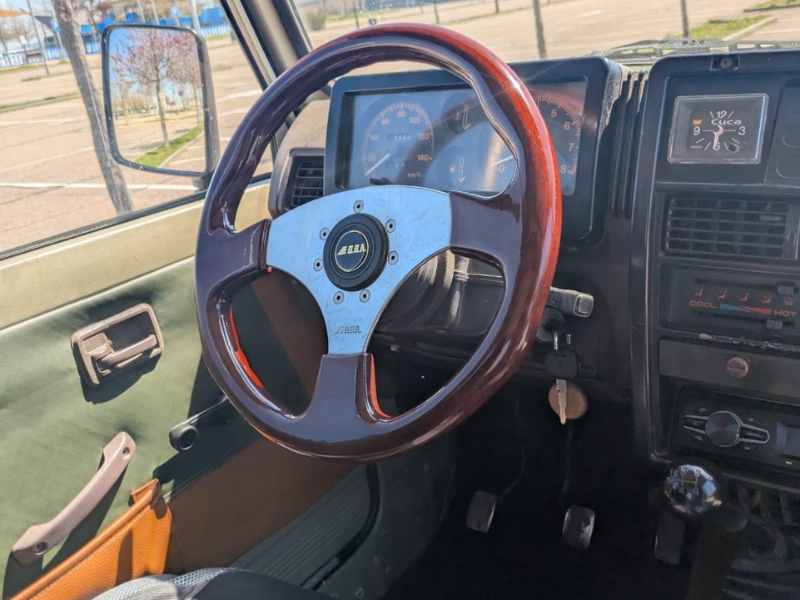 Se sustituyó el volante original por uno más compacto, mejorando la maniobrabilidad y la experiencia de conducción todoterreno.