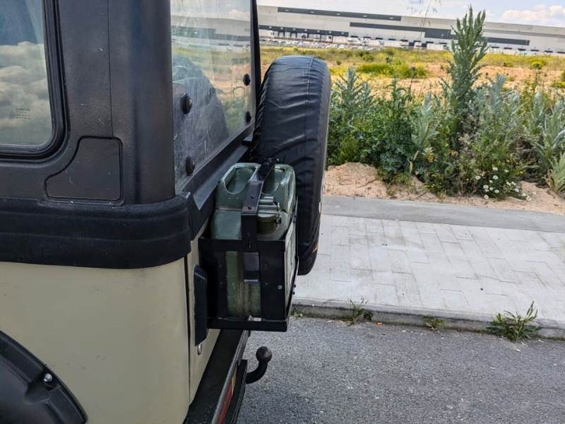 Se instaló un porta jerry can trasero para aumentar la capacidad de transporte de combustible y asegurar la autonomía en rutas largas.
