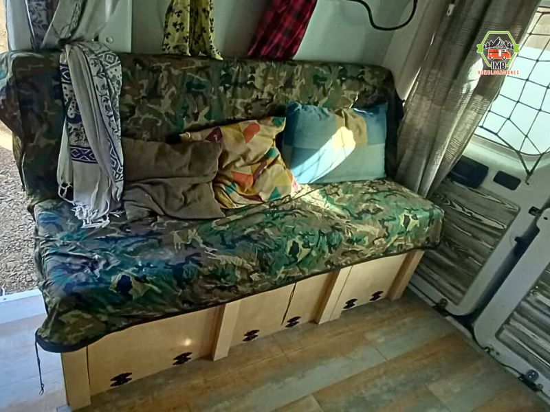 Camperización completa del vehículo mediante la instalación de mobiliario fijo en el interior del habitáculo, configurado para un uso cómodo y funcional como vivienda. Los muebles se integran de forma segura y conforme a la normativa vigente.