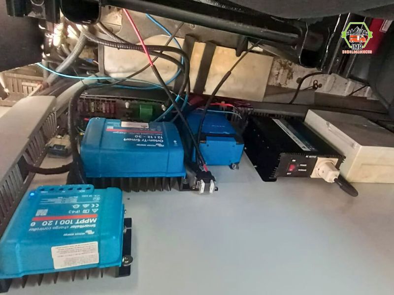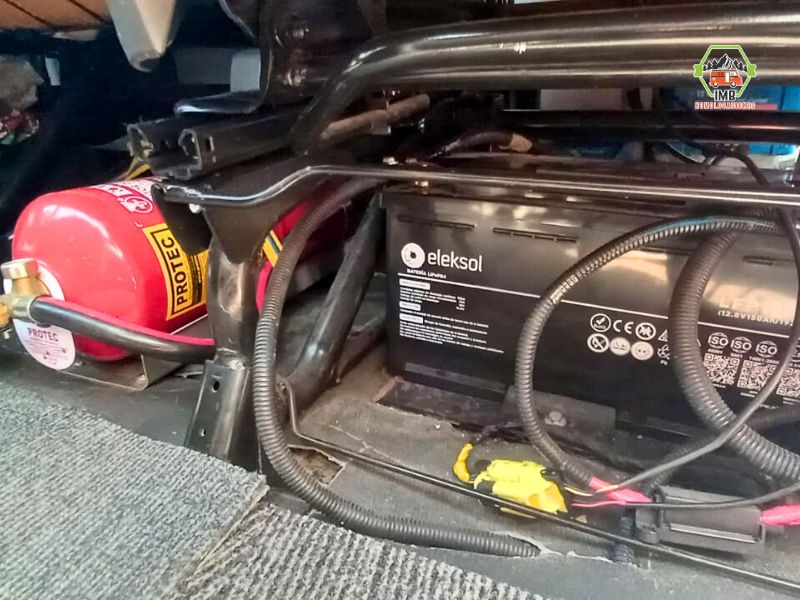 Instalación de un sistema eléctrico auxiliar a 12V, conectado al sistema principal del vehículo, que permite el uso de equipamiento interior de forma autónoma.