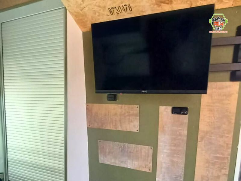 Legalización de distintos elementos de uso interior, como nevera, televisión con soporte articulado, batería auxiliar y tomas eléctricas, asegurando su correcta fijación y compatibilidad con el uso del vehículo como vivienda.