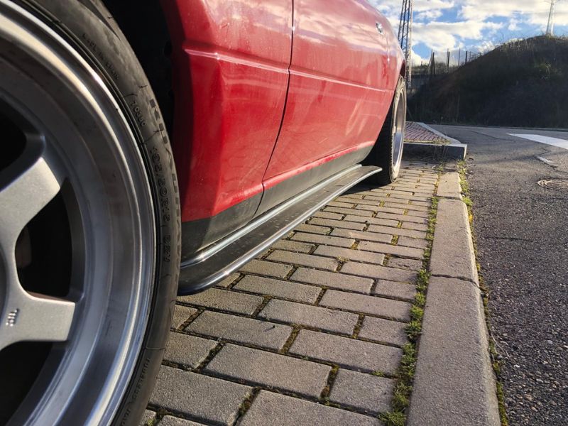 Instalación de faldones laterales IL MOTORSPORT, fabricados en ABS y diseñados específicamente para el modelo.