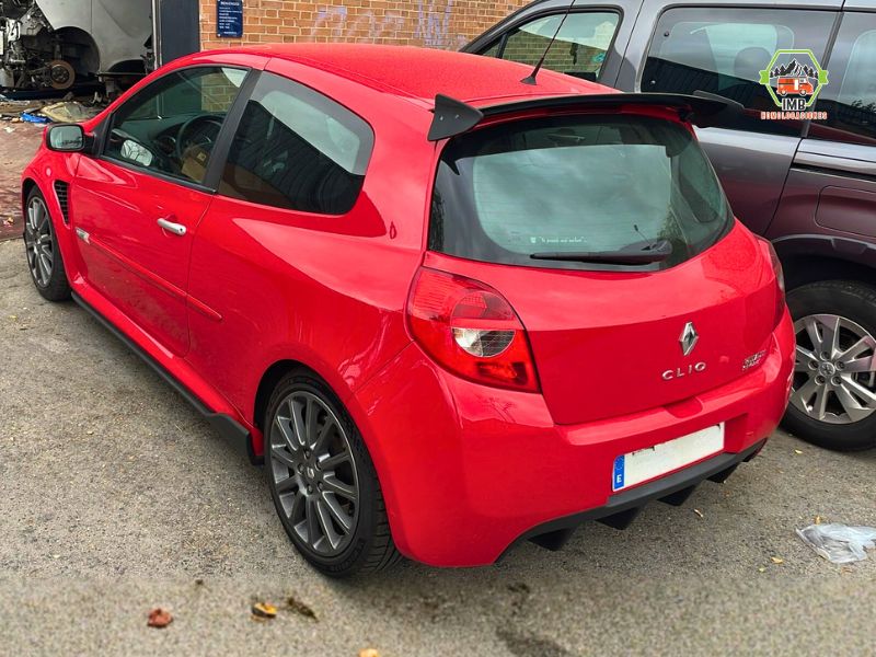 Homologación realizada en este Renault Clio en Madrid. Legalizamos las reformas estéticas y de suspensión para mantener la estética deportiva del vehículo y asegurar su correcta inscripción en la ficha técnica.