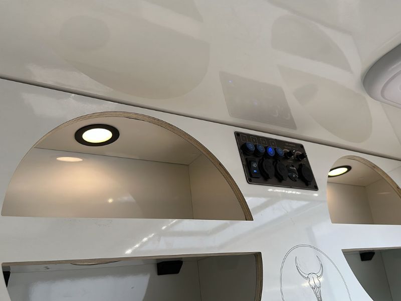 - Tomas USB, enchufes, luces LED y panel de control para gestionar el sistema.